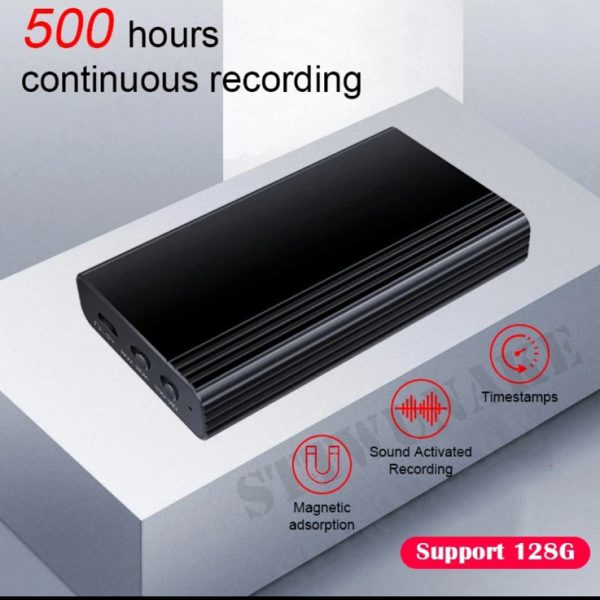 מכשיר הקלטה 500 שעות הקלטה עם הפחתת רעשים נצמד עם מגנט דיגיטלי מקצועי כולל הפעלה על ידי צליל. המכשיר תומך בכרטיס זיכרון 128 ג’יגה בייט. המכשיר יכול לקלוט קול רעשים ממרחק של 60 מטר.